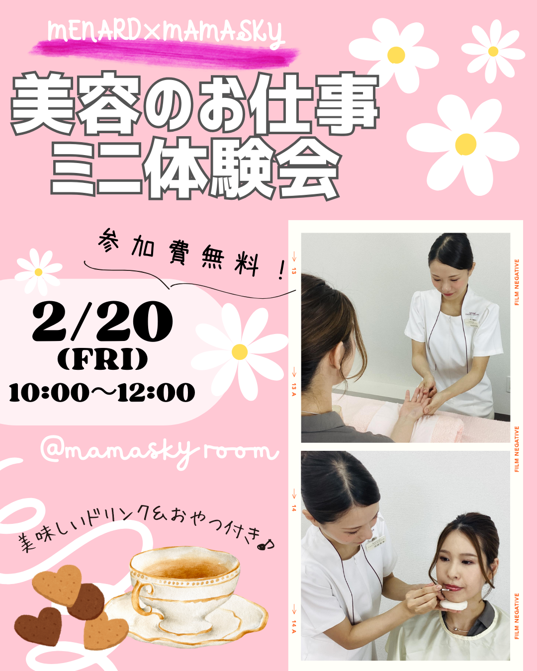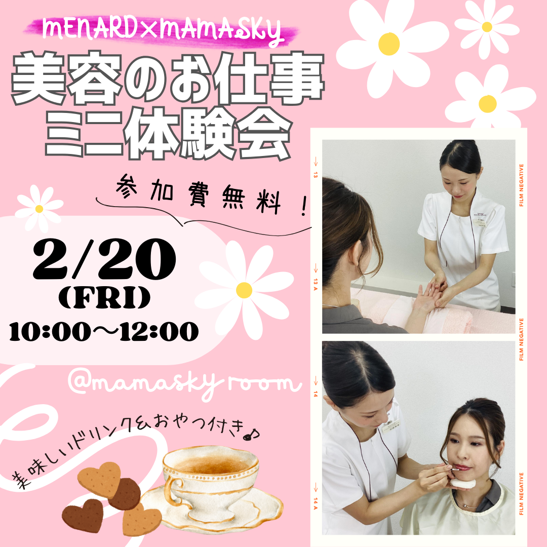 | イベント名 | 美容好きママのための美容のお仕事ミニ体験会|メナード×mamasky コラボイベント |