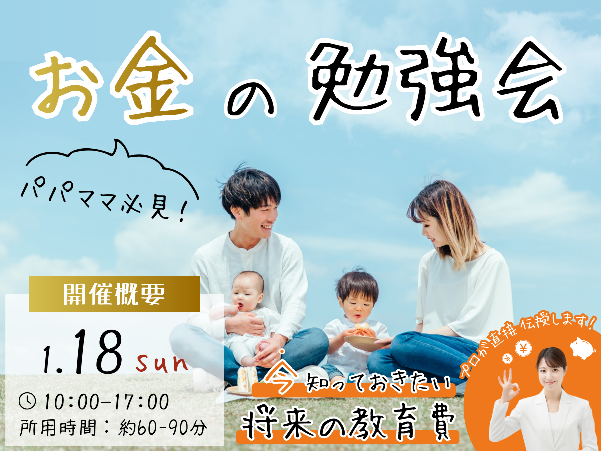 | イベント名 | 今知っておきたい将来の教育費~1月開催 お金の勉強会~ |