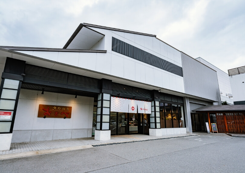 おたべ本館では、ここでしか味わえない限定スイーツのほか、工場見学やおたべの手作り体験を楽しめます。