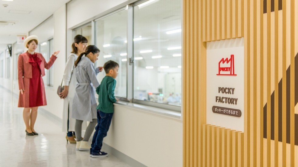 工場見学エリアは、大きく分けて2つあります。ポッキーファクトリーでは、人気商品「ポッキー」の製造ラインを見学できます。ガラス越しに並ぶたくさんのポッキーは、迫力がありますよ。