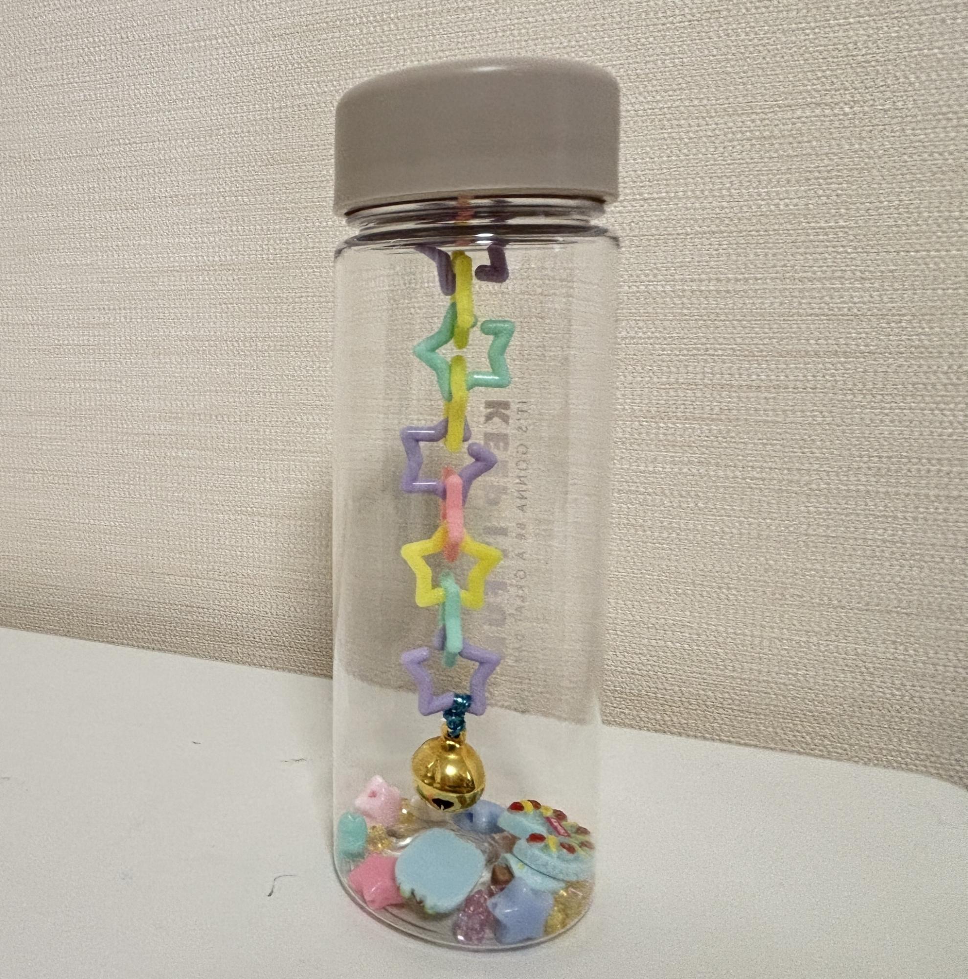 お子さんが握りやすくて、持ち運びしやすいサイズの、小さなドリンクボトルを使った、マラカスづくりをしたいと思います。