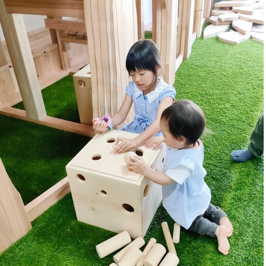 9.-①キグミンの森では、滋賀県産の木材を使用した遊具やおもちゃで木育遊びが楽しめる
