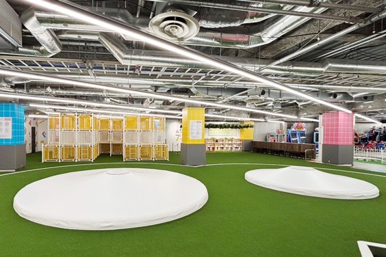 パーク内は全面人工芝が敷かれているので、寝転がって遊ぶのも気持ちいいですよ♡未就学児エリアには、ふわふわの白いマットが敷かれているため、小さな子ども連れのママパパも安心して見守れます。