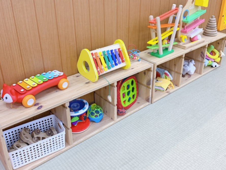 おままごとキッチンや知育遊び、身体を動かせるすべり台やクッションブロックなど、子ども達の興味をそそる遊具やおもちゃが揃っていますよ。