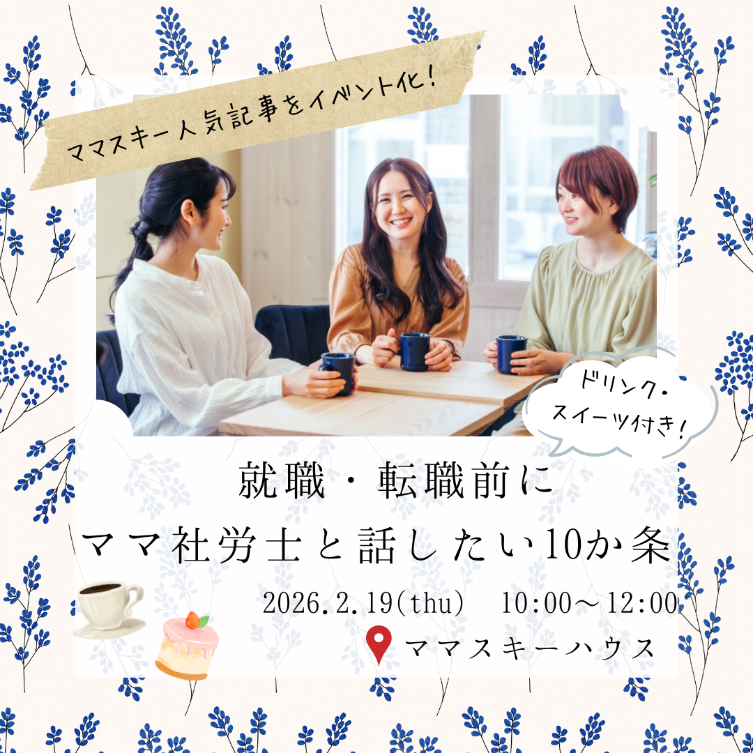 | イベント名 | 正社員?パート? 就職・転職前にママ社労士と話したい10か条! |