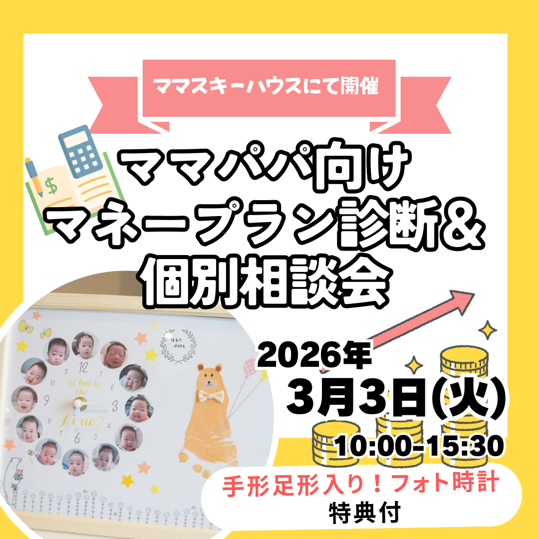 | イベント名 | 【手形足形入りフォト時計付き】ママパパ向け マネープラン診断&個別相談会 inママスキーハウス |