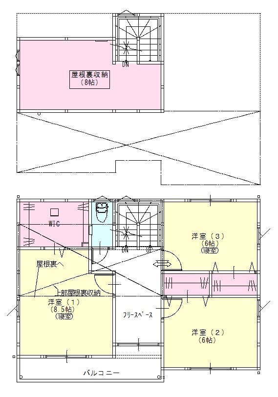 8帖と広々した屋根裏収納は、固定階段付きなのも嬉しいポイント。