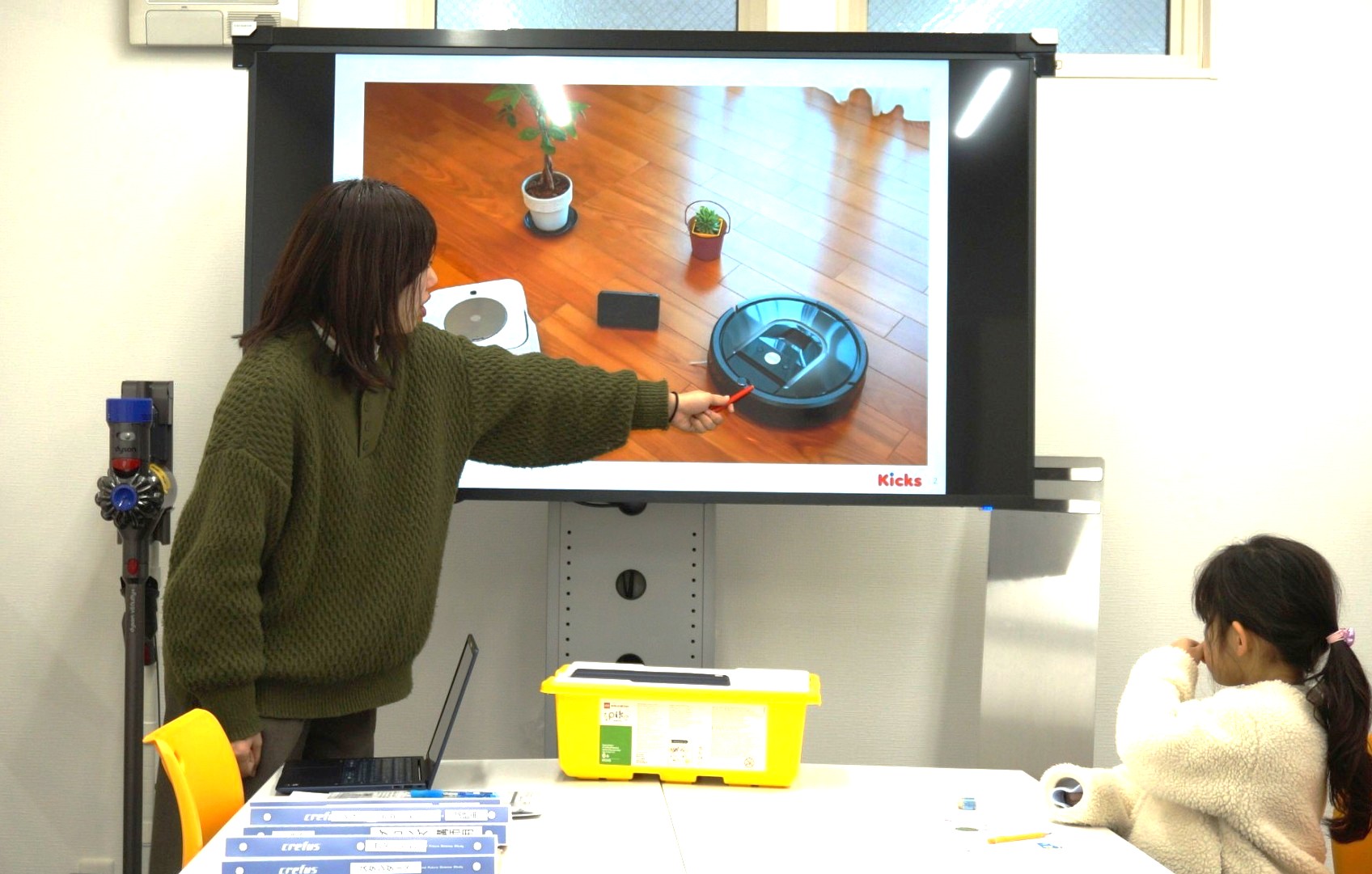 身近にあるロボットの写真を見ながら、「このロボットは、どんなお仕事をしているかな?」と先生がやさしく問いかけます。