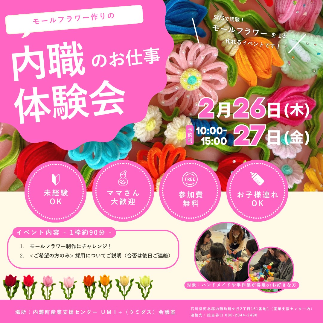 | イベント名 | モールフラワー作りの内職のお仕事体験会 |