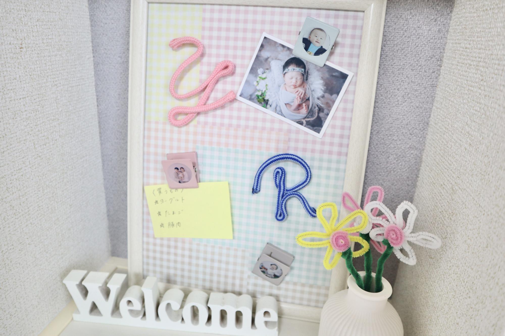 ウールレターは、紐にワイヤーを通してアルファベットの形を作っていきます。好きなアルファベット2文字まで作成でき、裏面にはマグネットを付けるのでこちらもボードに貼って使っていただけます♡