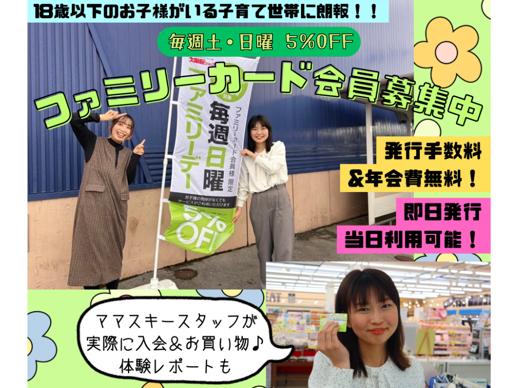 また、事前にチェックしておきたい方はママスキーの人気記事「毎週土・日曜5%OFF!? ファミリーカード会員になって実際にお買い物してみた!」もぜひご覧ください♪