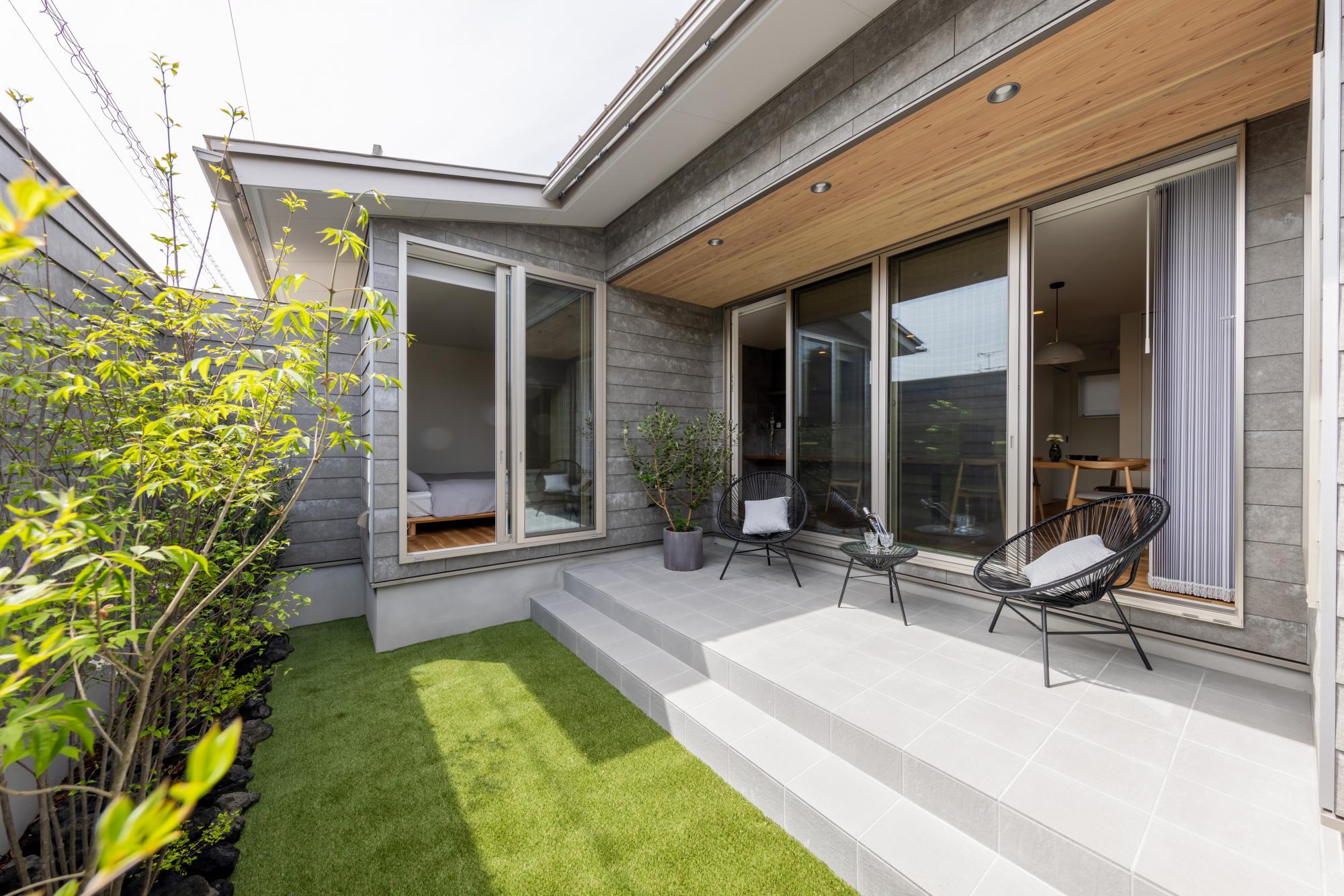 外からの視線はカットしつつ、中庭からたっぷりの光を取り込むプライベートな設計が得意。カーテンがいらない開放的なリビングなら、お子様が走り回っても安心。毎日リゾートホテルにいるような気分で子育てを楽しめます。