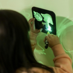 一歩入ればそこはデジタルの世界☆綺麗な世界に目を奪われるはず…!かわいいきのこの妖精たちが様々な所で気まぐれに登場します。そんな妖精たちを探すのもドコドコでの遊び方のひとつですよ♪