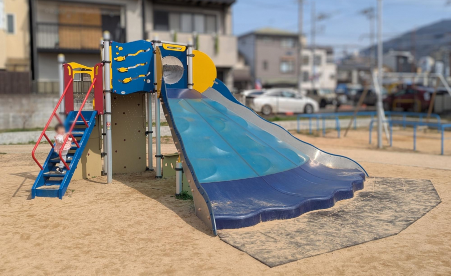 住宅街にある、広くて明るい公園です。半円型ジャングルジムや大きな滑り台、小さな滑り台、ブランコ、シーソーなどがあり、よちよち歩きのお子さまから楽しめる空間です!午前中には近くの保育園や幼稚園の子ども達がよくお散歩に来ています。