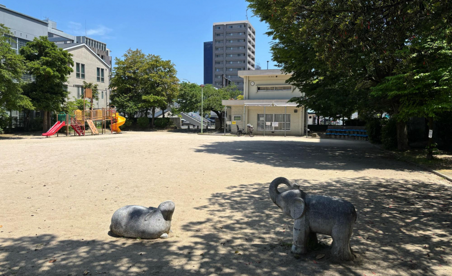 大通りに面したオアシス、子どもたちが遊ぶ様子を見守れる公園