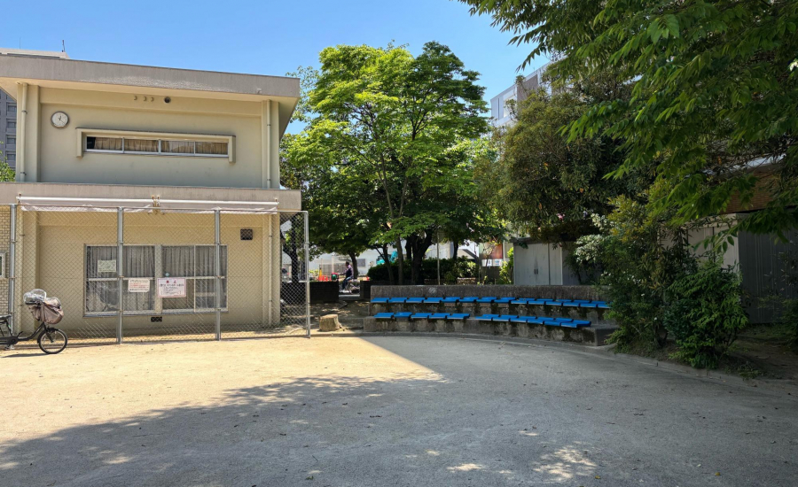 広々とした砂地のグラウンドでは、キャッチボールやサッカー、おにごっこなどの走り回る遊びなど、思い切り身体を動かすことができます。特筆すべきは、グラウンド脇に設置されている、観覧用のブルーのベンチ席!ちょっとしたスポーツイベントが行われたときには、ここがちょうどよい観戦スポットになります。イベントのみならず、日常での親子でスポーツを楽しむ光景や、地域の交流の場としても活用されています!ミニ球場のような環境にお子さまも楽しめるのではないでしょうか!