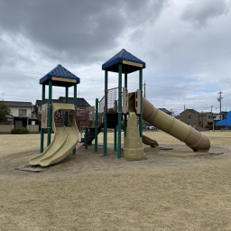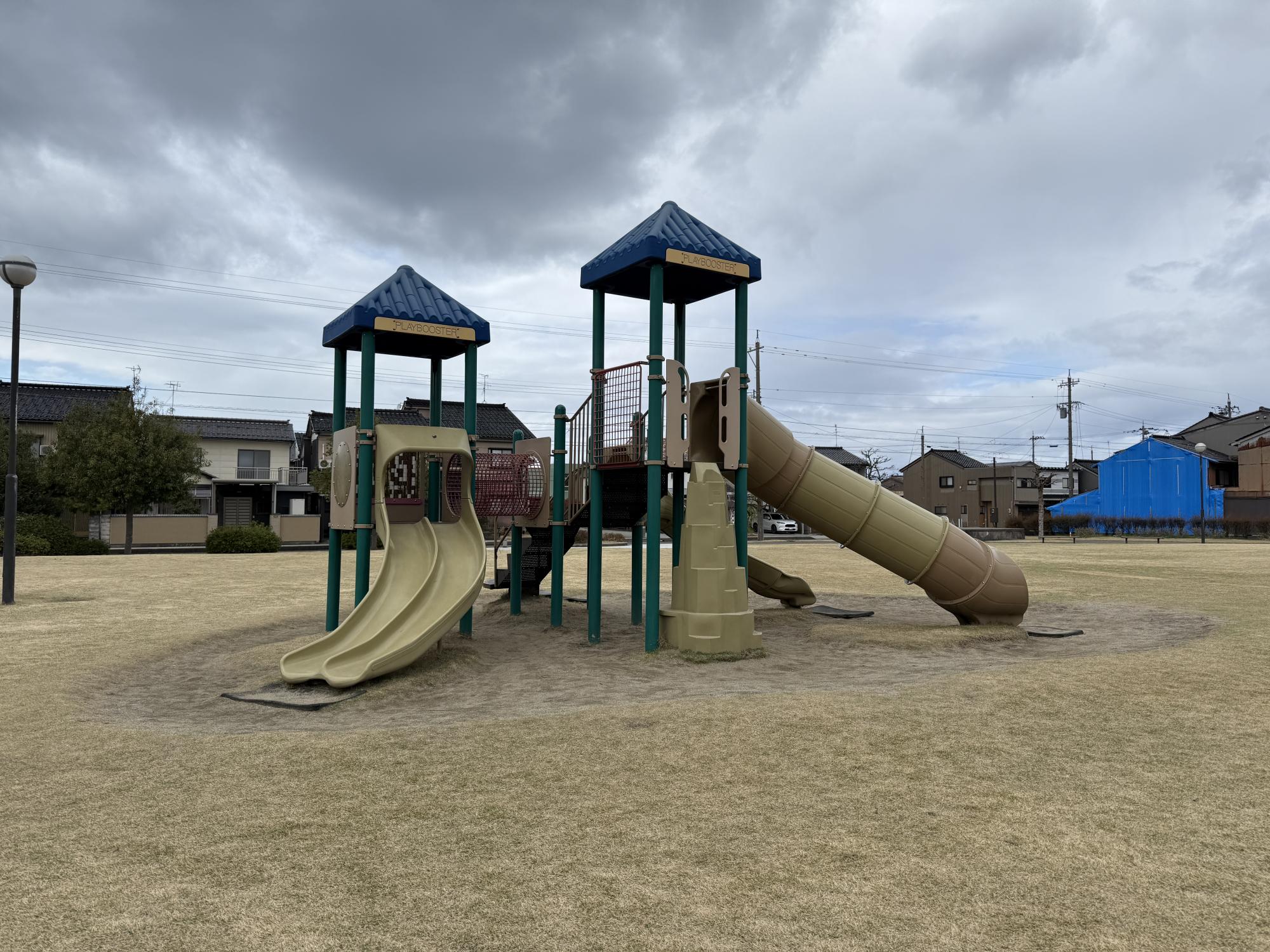 公園の中央には、すべり台やブランコ、のぼり遊具など小さなお子さんも安心して遊べる遊具が揃っています。地面は草地が多く、転んでもケガをしにくいのが嬉しいポイント◎ベンチも各所に配置されているので、ママは見守りながらちょっと一息…という過ごし方もできます。