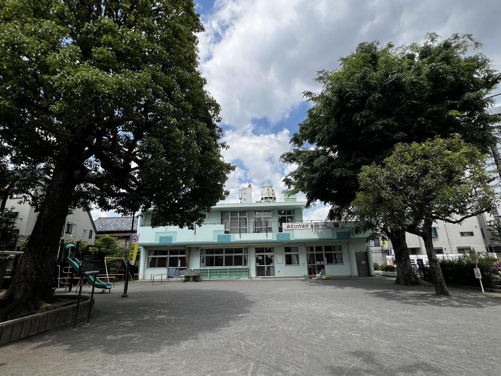 中野区立朝日が丘公園は、最寄り駅から徒歩4分とアクセスの良い遊び場です。最大の特徴は、公園内に児童館が併設されていること。公園で遊んでいる最中に突然雨が降ってきても、すぐに屋内遊びに切り替えることができ、遊びながら雨宿りもできる最高の環境なんです♪