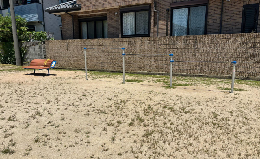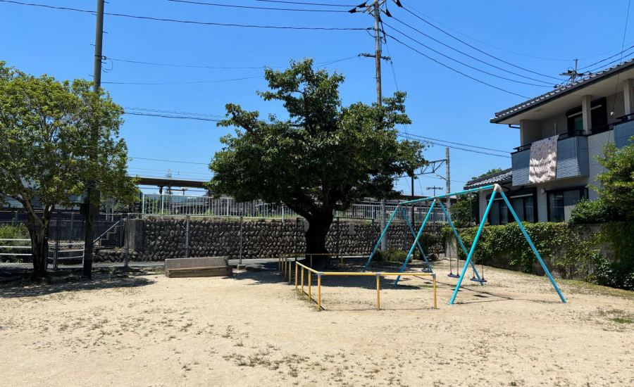 園内にはブランコやジャングルジム、小さなお子さんも遊びやすい高さのすべり台、砂場、鉄棒が設置されており、それらの真ん中に、駆けまわるのにちょうどよい広さの砂地が広がっています。縄跳びを使って実際の電車を見ながら、遊具を駅に、電車ごっこなどをしてみてはいかがでしょう♡