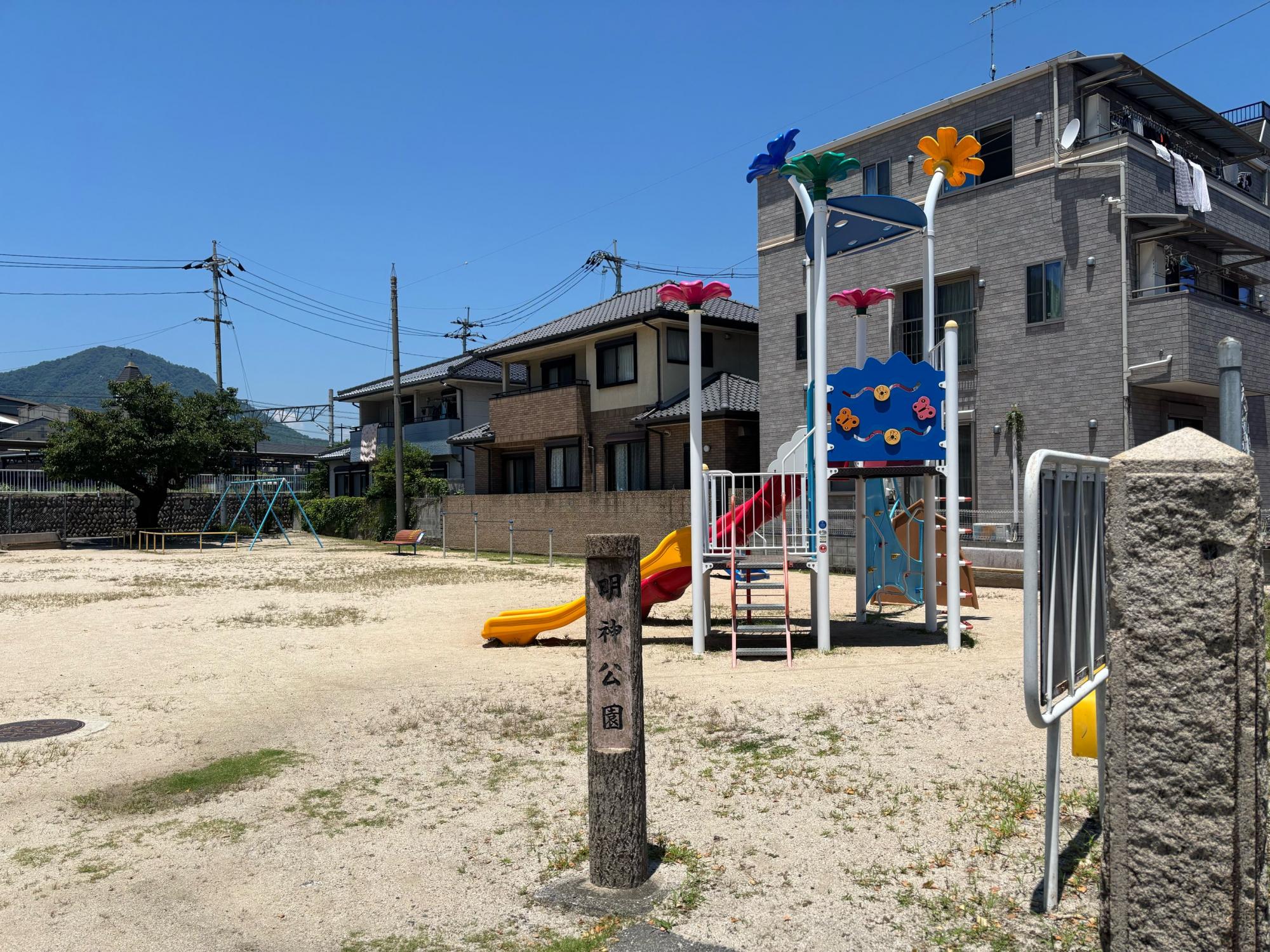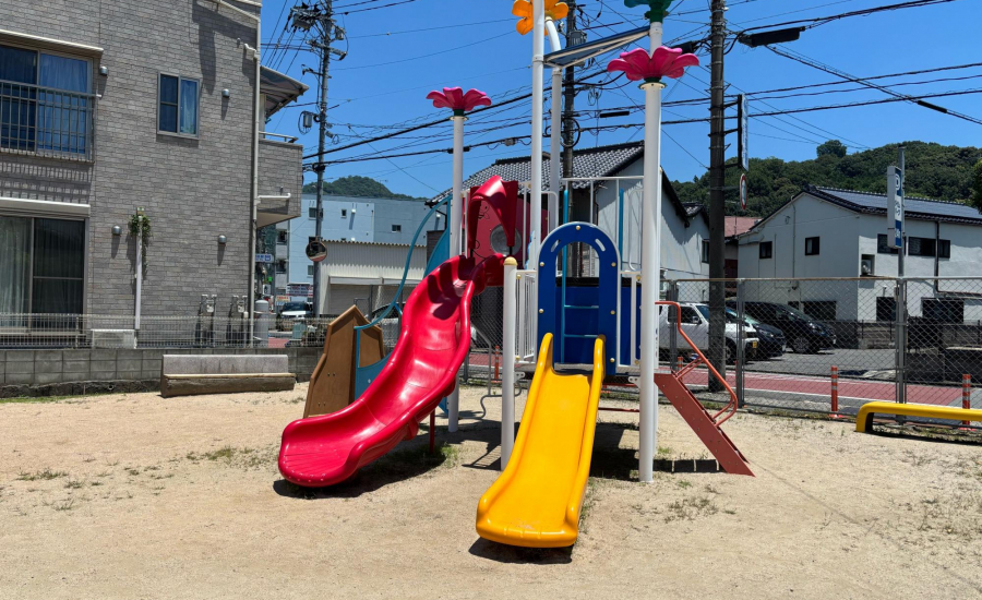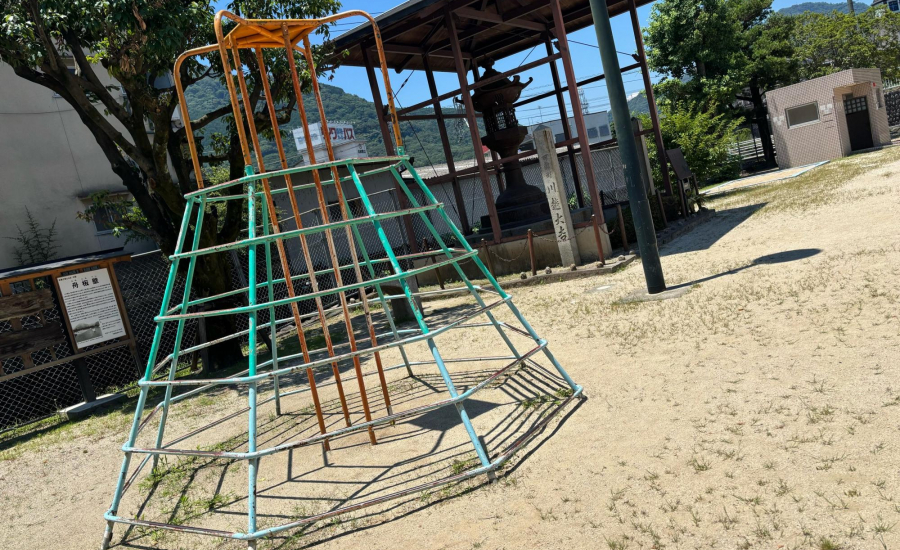 こちらの公園には、広島市指定重要有形文化財の鉄燈籠があり、古くからの可部の歴史を感じさせてくれる公園になっています。可部では古くから鋳物工業が代表産業の一つとなっており、園内にあるものは、可部の鋳物師三宅氏が鋳造し、金比羅大権現に奉納されたものです。明神公園は昔、「船入堀」と呼ばれる川船の発着場だった場所で、海上交通の守り神として崇敬を集めた金比羅大権現に奉納され、川船の船着場に明かりを灯す常夜灯として使用されていたそうです。公園で遊びながら、親子でその地の歴史について話しながら想像をめぐらせれるのも、この公園ならではです♡