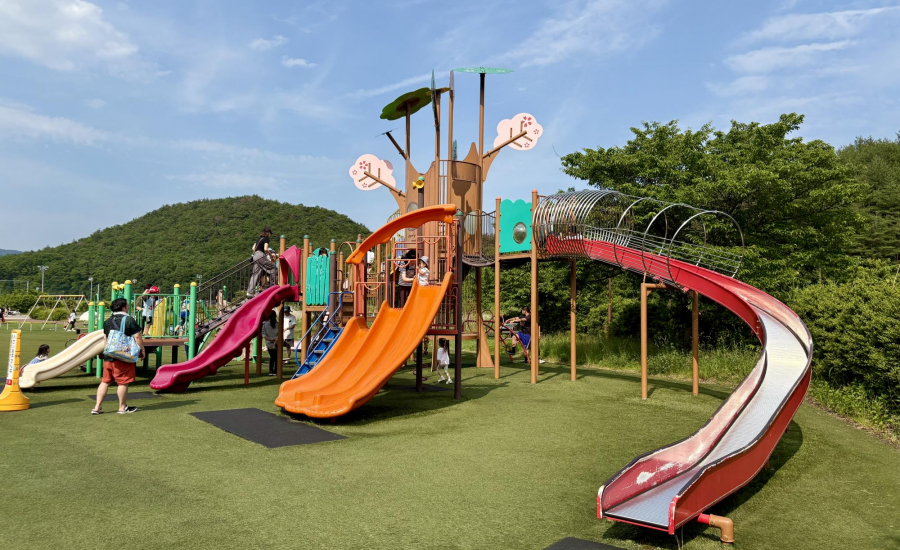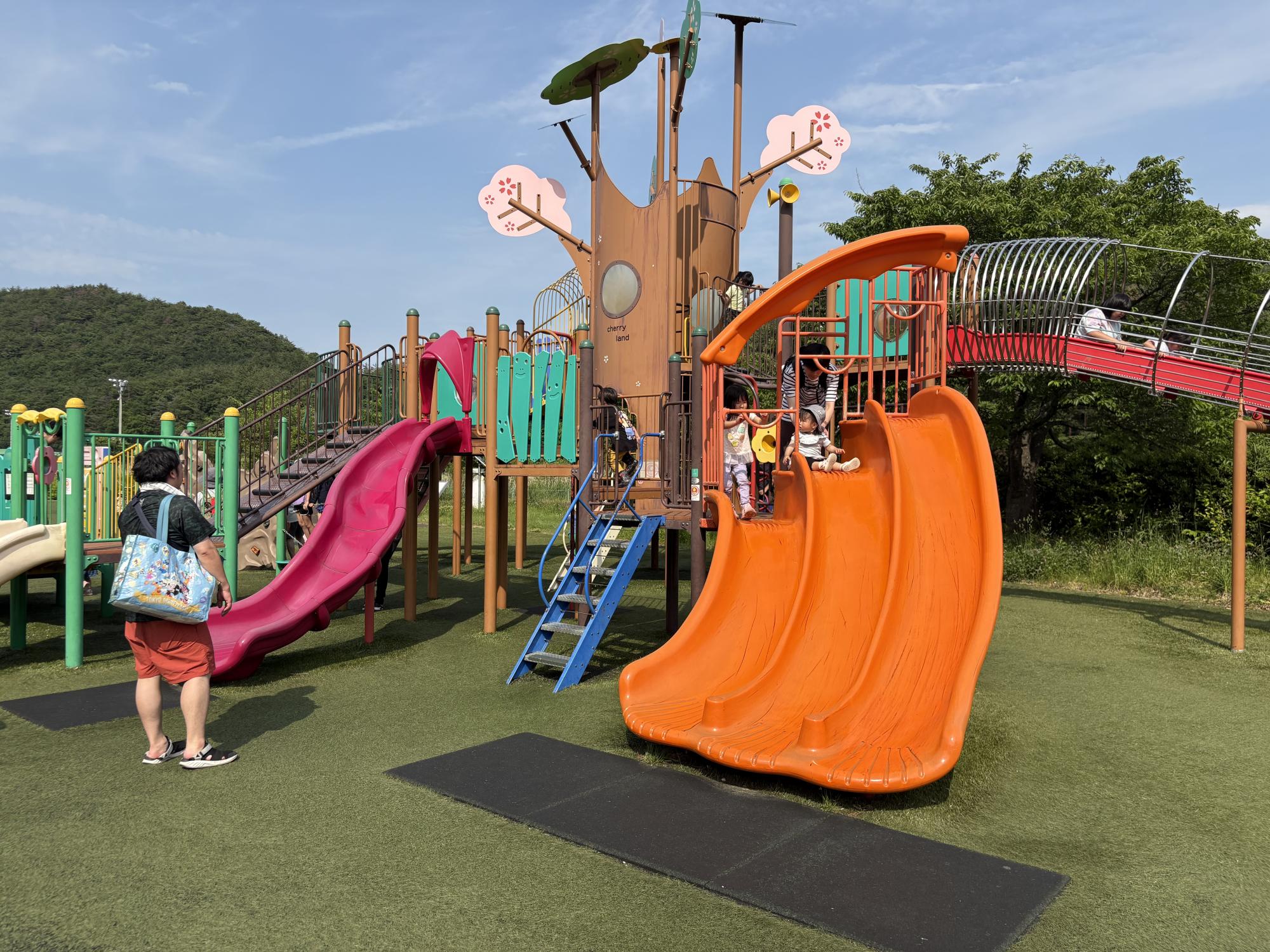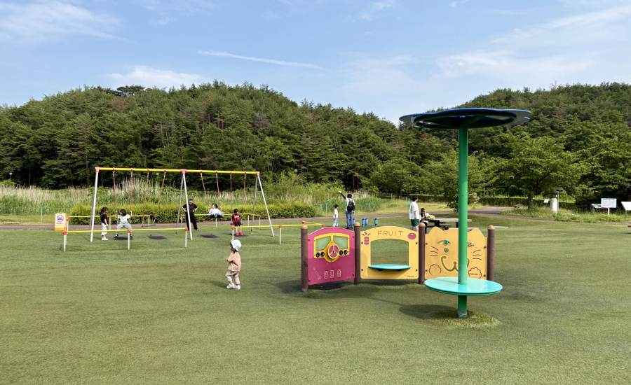 ぴょんぴょんドームの周りも大型遊具の周りも全部芝生になっているので、転んでも安心!思わずみんなでゴロゴロ〜としたくなっちゃう公園です♪