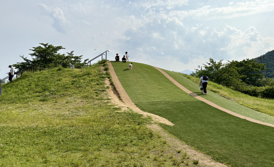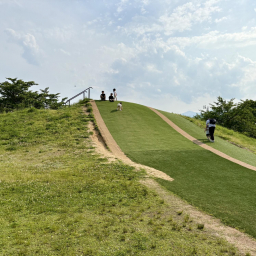 ぴょんぴょんドームのそばには大型複合遊具があり、滑り台やジャングルジム、ぐらぐら橋、ターザンロープも。ローラーすべり台や小さなすべり台もあり、小さなお子さんでもチャレンジしやすくなっています♪さらに、芝生の小高い丘ではダンボールやソリでそり滑りをしたり、ダッシュで駆け上ってダッシュで下って行ったり、ゴロゴロ寝ながら転がって行ったりと、いろんな楽しみ方ができます!屋根付きのベンチや自動販売機、水のみ場、トイレが点在しているのも嬉しいポイント☆