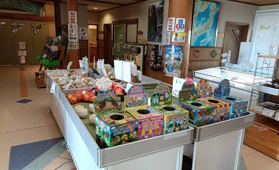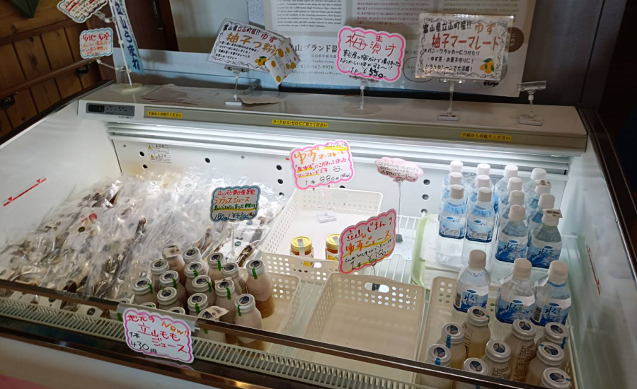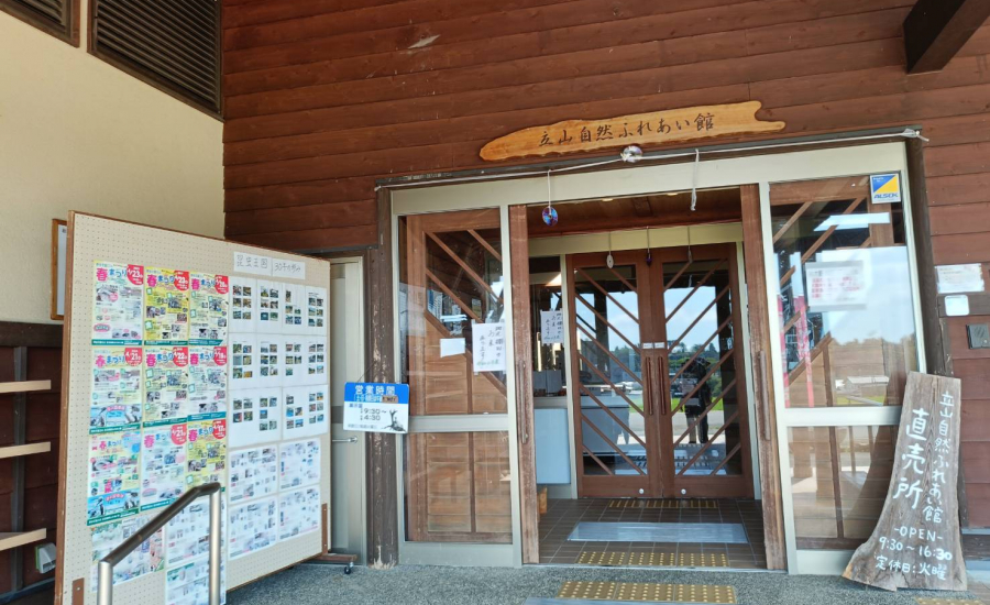 館内には直売所もあり、地元立山産の新鮮な野菜や山菜、ラ・フランスジュースなどの加工品、さらに立山の天然水で育てたお米「山のいただき」も数量限定で販売されています。