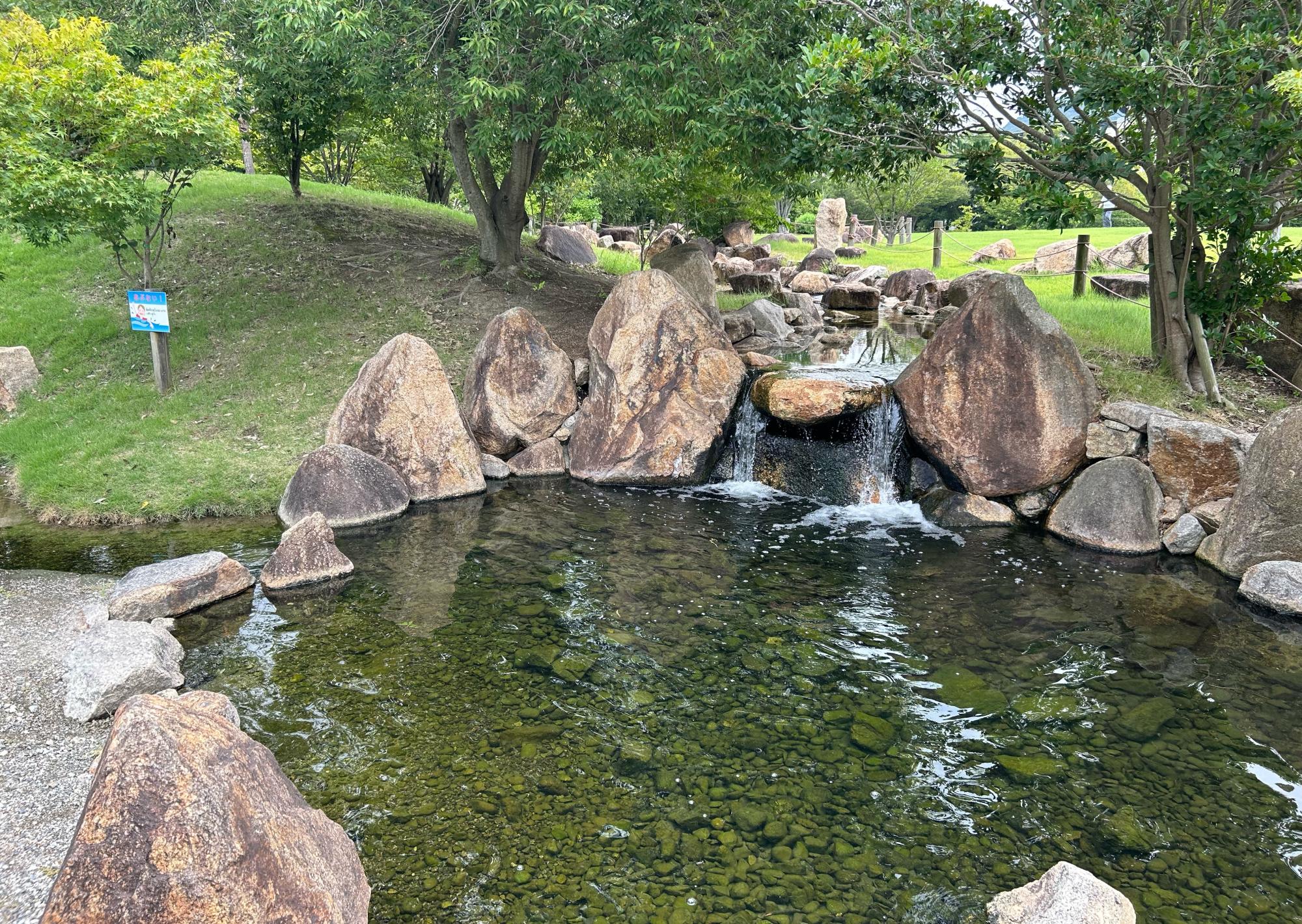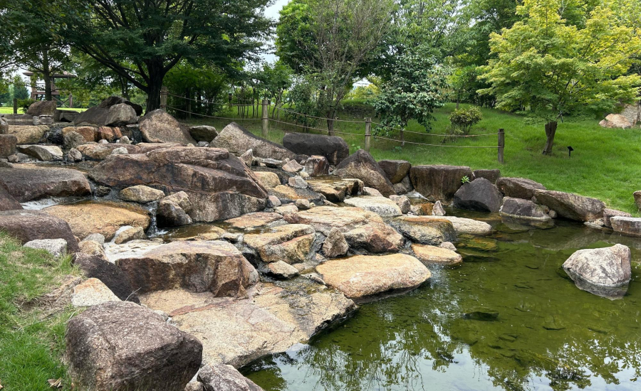 自然環境体験公園は、併設されている児島湖流域下水道浄化センターの下水処理水を再利用した修景施設です。この公園の利用を通じて下水道事業への理解を深めると共に、水や緑、その周りに集う生き物を観察しながら自然環境について学ぶことができます。滝や小川のせせらぎに癒されながらウォーキングをしたり、子どもと一緒に樹木や草花、野鳥や虫などを観察しながらのんびりと散歩するなど、それぞれの過ごし方を見つけてみてくださいね!園内は、「湖沼のゾーン」や「森とせせらぎのゾーン」といった4つのテーマに合わせて分けられているので、飽きることなくさまざまな風景が楽しめますよ♪