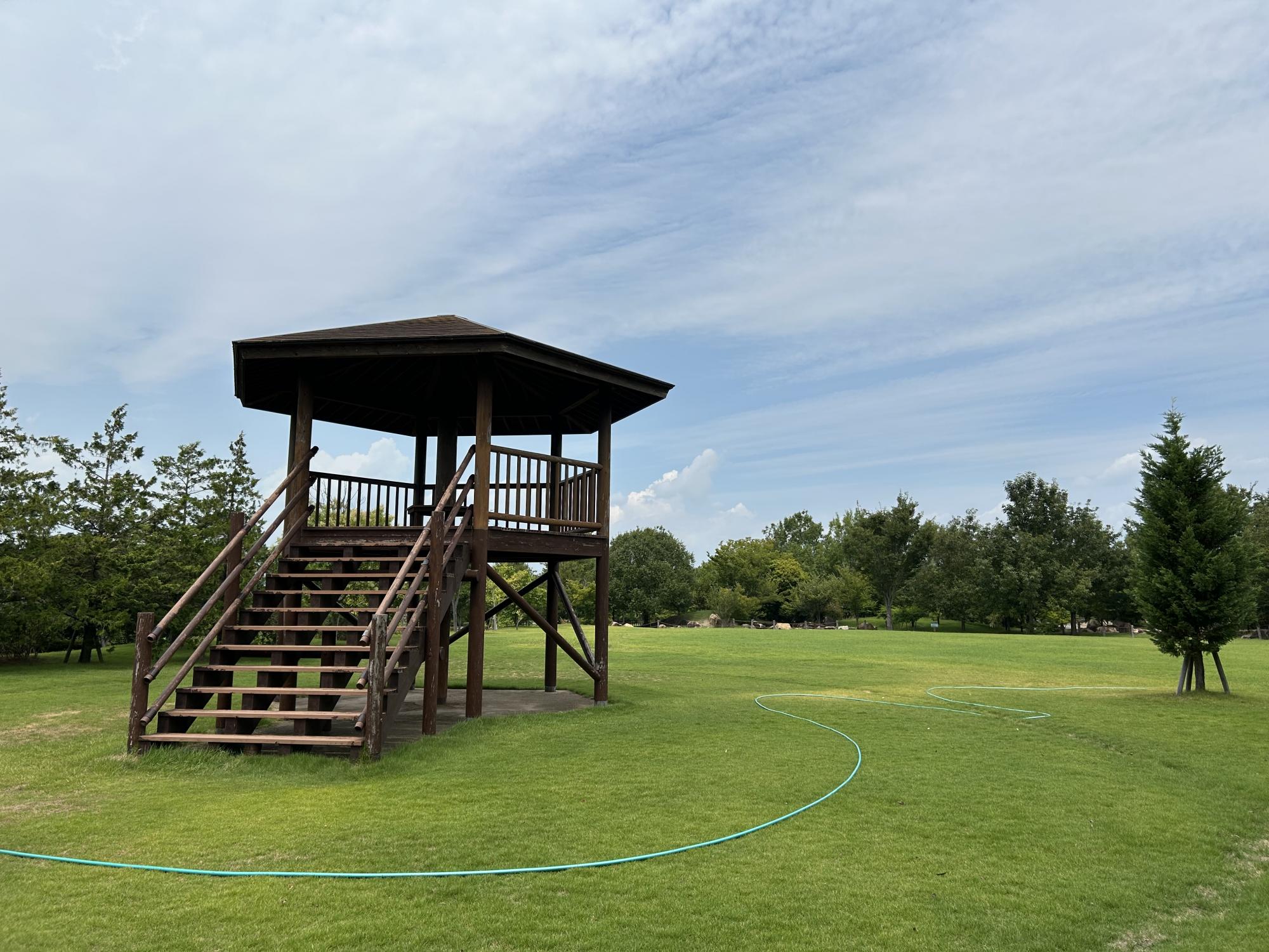 広大な敷地の中には展望台やあずまや、ベンチが点在しており、休憩を取りながらのんびりと過ごせます。トイレは、入り口付近の他に園内に点在しているため、子ども連れでも安心して利用できますよ。屋根が付いている場所もあり、日陰でゆっくりと休むことができるので、お弁当やおやつを食べながらピクニック気分を味わうのもおすすめです!美しい景色が望める展望台は芝生広場に囲まれており、バトミントンなどの道具を持ち込めばさまざまな遊びも楽しめますよ♪遮る物のない広い空間で、子どもも大人も体を動かしながらのびのびと過ごしてみてくださいね☆