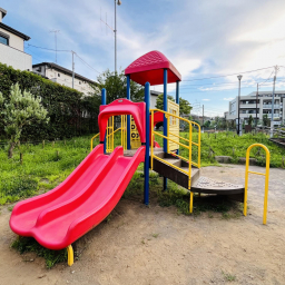 徒歩圏内にコンビニやスーパーもあり、おやつや飲み物の調達もラクラク。ふらっと立ち寄って、公園あそびとお買い物のコンビネーションを楽しむことができます。駐輪場も完備されているため、自転車でのアクセスも安心です。