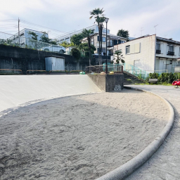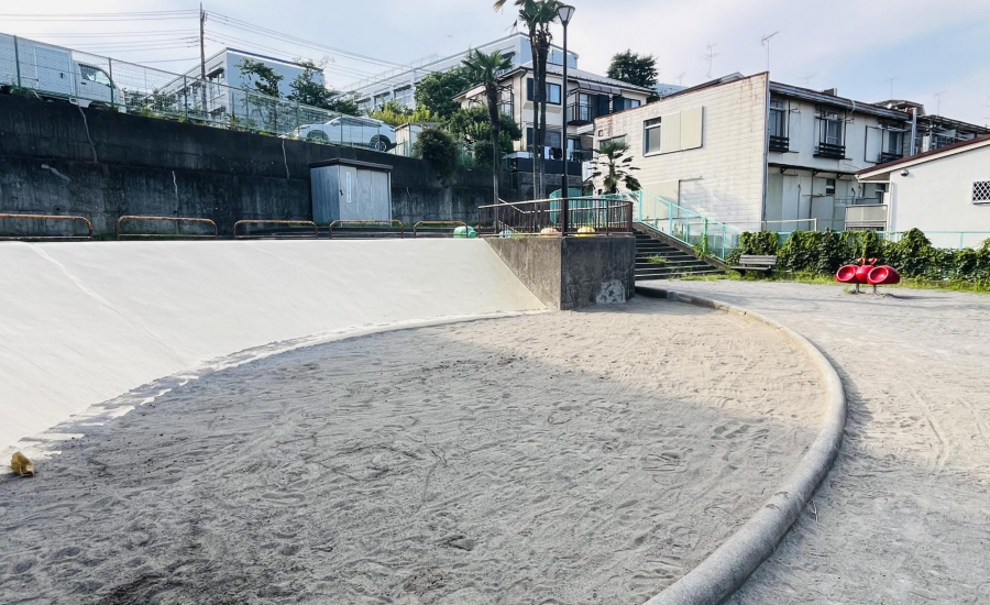 すべった先には、大きな砂場が広がっていて、どこに座っても、どこで遊んでもOKな開放感。