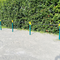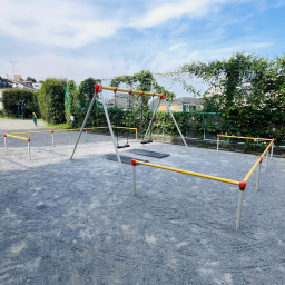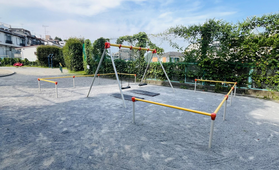 広い園内には、すべり台と砂場のほかにも、子どもたちが体を動かせる遊具が揃っています。定番のブランコや鉄棒からは、他の子どもたちがすべり台ですべっている様子を見ることができますよ。鉄棒は高さが異なる数本が並んでいて、年齢やレベルに合わせて挑戦できます。