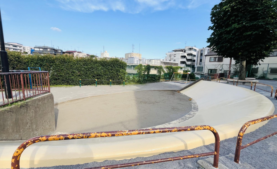 この辺りは、自然の起伏をそのまま感じられる高低差のある土地。そのような地形をうまく活かして作られた公園の目玉は、白い巨大なすべり台です。