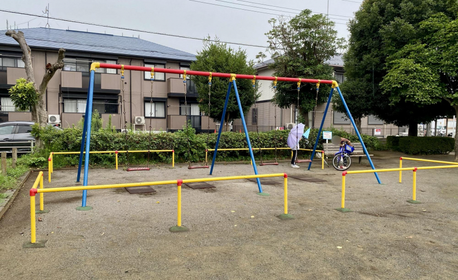 所沢市にある新郷公園は、子どもたちがワクワクするポイントがたくさん詰まった公園です。園内にはブランコや鉄棒といった定番の遊具に加え、イルカのイラストと仕掛けが施されたシーソーがあります。動物のデザインは小さな子にとって親しみやすく、遊びの時間をより楽しくしてくれるはず♪