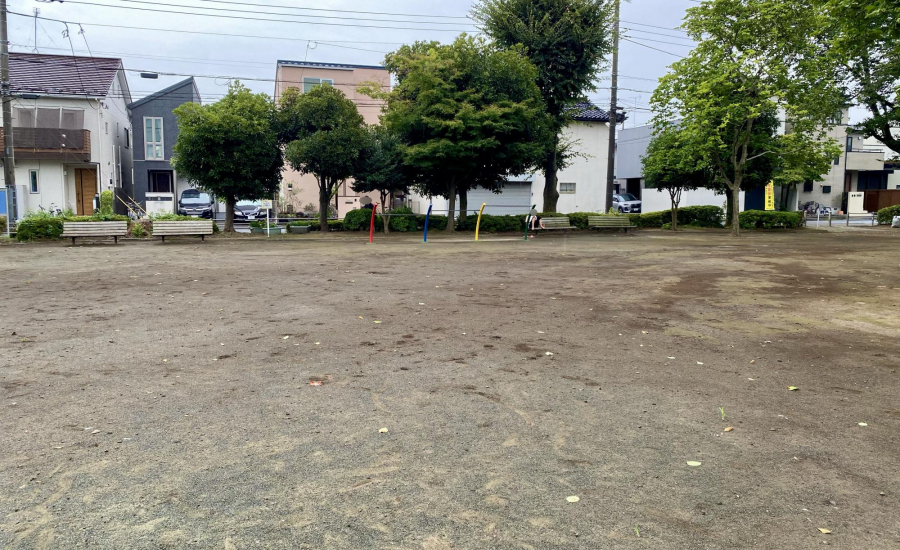 公園の中央には大きな広場が広がっており、鬼ごっこやかけっこ、ボール遊びなど自由な遊びを楽しむのにぴったりです。舗装されていない広場は、子どもたちにとって思い切り体を動かせる、開放感のある場所となっています。