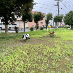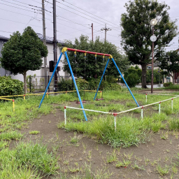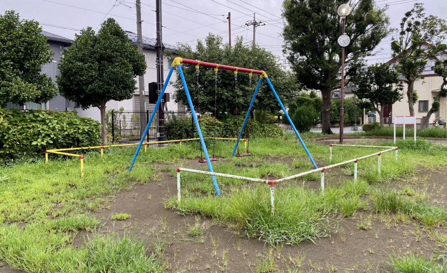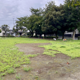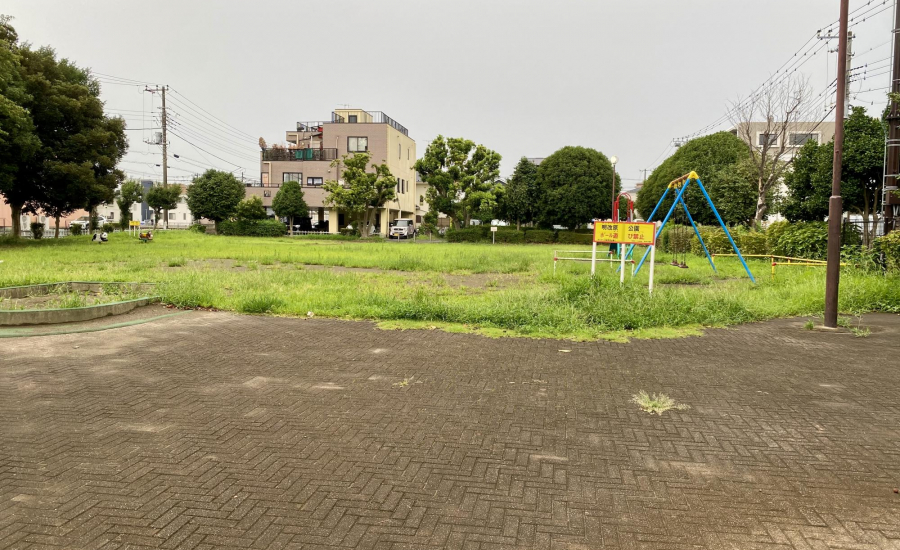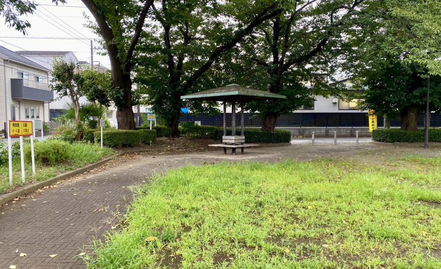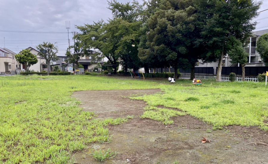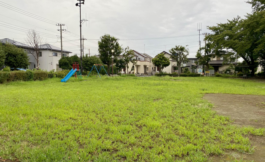 所沢市の住宅街の一角にある明改原公園は、芝生の広場を中心にした地域に根付いた公園です。広場はフラットで見通しが良く、子どもたちが思い切り走り回ったり、ボール遊びやシャボン玉を楽しんだりする姿がよく見られます。芝生なので転んでもケガをしにくく、小さな子の外遊びデビューも安心です◎