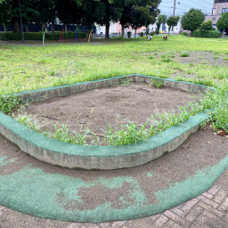 明改原公園には、すべり台・ブランコ・スプリング遊具・砂場といった子どもに人気の遊具が揃っています。すべり台は小さめで、幼児でも挑戦しやすく、親子で一緒に利用する姿もよく見られます。ブランコは小さな子どもから小学生まで幅広い年齢で楽しめるのが良いですね。砂場ではバケツや型抜きなどを持ち込めば長時間遊べるので、お友達同士での遊びにもぴったりです。園内には東屋やベンチが設置されており、遊ぶ子どもを見守りながら休憩できる環境が整っています。