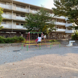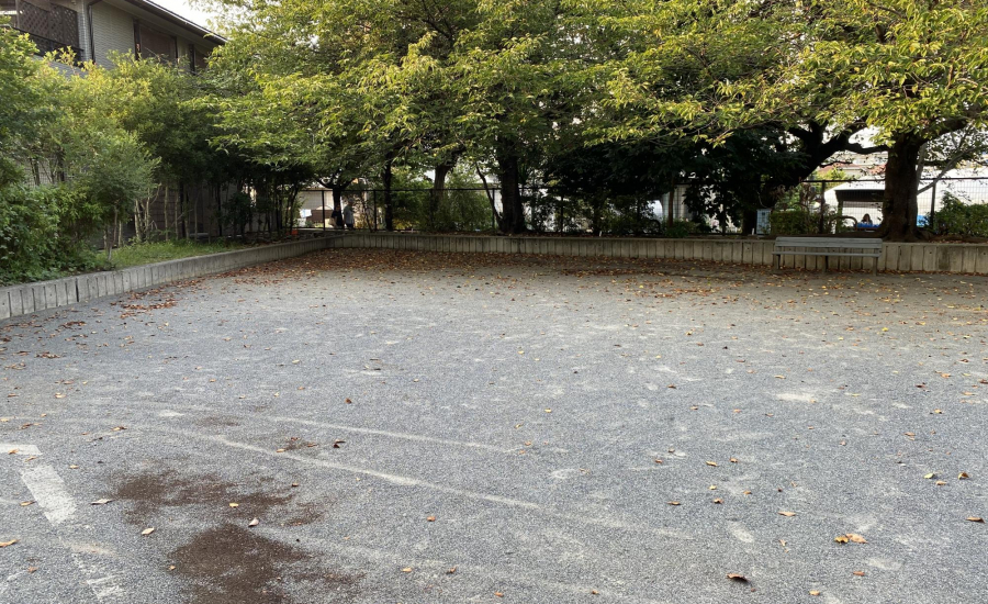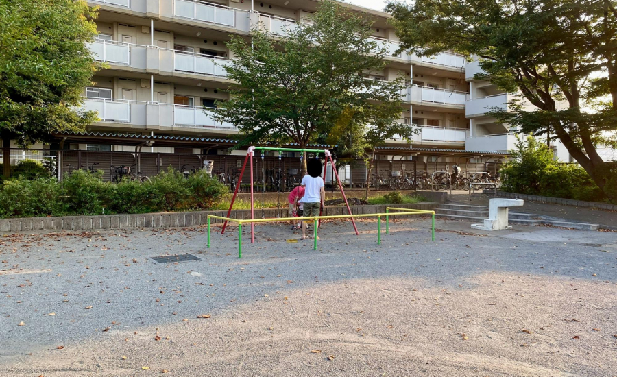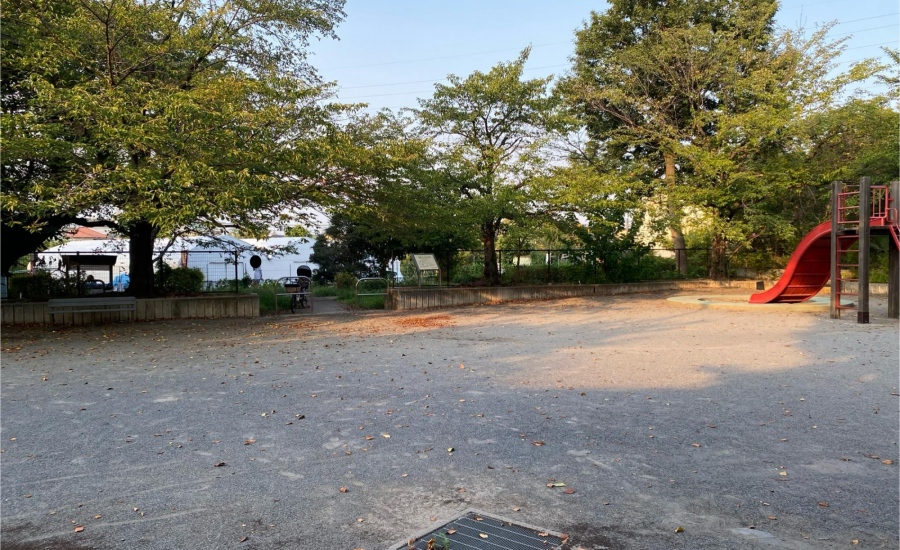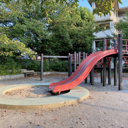 定番のブランコもあり、お友達と一緒に楽しんだり、ママパパがそばで見守りながら一緒に楽しむこともできます。遊具の周りには砂地の広場が広がっており、ボール遊びやかけっこも可能です。ベンチも複数設置されているため、休憩しながら遊ぶことができ、親子でのんびりとした時間を過ごせます。