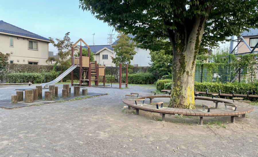 園内の中央には広々とした芝生広場が広がっています。鬼ごっこなどを楽しむ子どもたちの姿が見られ、休日には家族連れでにぎわいます。レジャーシートを広げれば、ちょっとしたピクニック気分も味わえ、親子でおやつを楽しむ時間も特別な思い出になりそう♪