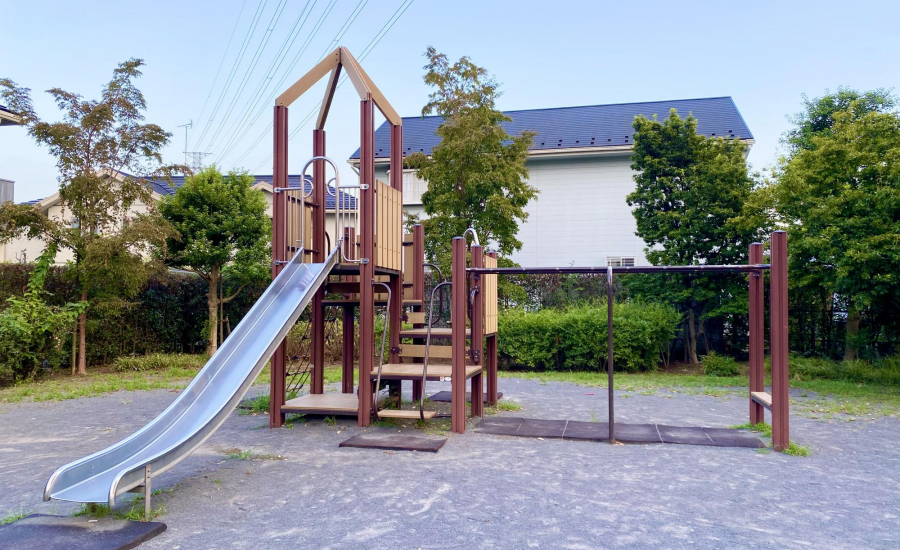芝久保三丁目ふれあい公園は、西東京市にある住宅街の中の開放的な公園です。おすすめは屋根付きでフェンスに囲まれた砂場と複合遊具◎