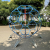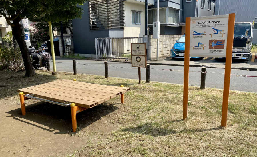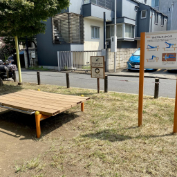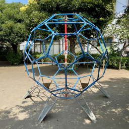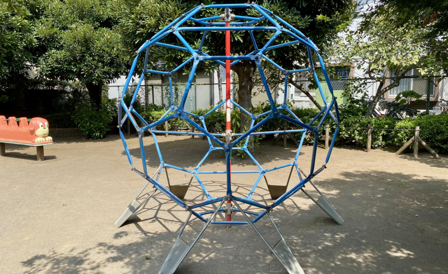 また、ちょっと大きなお子さんに人気なのが球体のジャングルジム。中に入ったり上に登ったり、体を思いっきり使って遊べるので、元気いっぱいの子にはたまりません。小さな子にはスプリング遊具や砂場があるので、年齢に合わせて自由に楽しめるのもうれしいところ。トイレを挟んで反対側には健康遊具もたくさんあります。