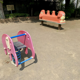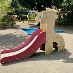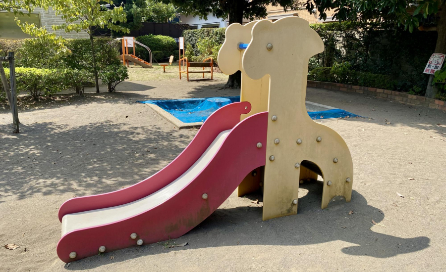 下連雀あじさい児童遊園に来ると、まず目に入るのがキリンの形をした小さなすべり台。とってもかわいらしくて、子どもが「もう一回!」と何度も楽しみたくなる遊具です♡はじめてのすべり台にもぴったりで、ママパパも安心して見守れますよ。
