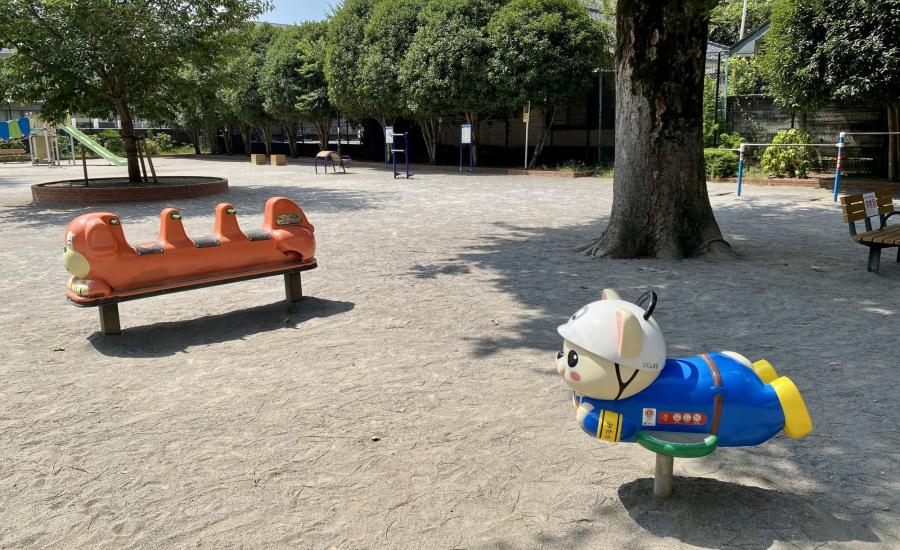 公園の一角には、色々な形をしたスプリング遊具が置かれていて、揺れる楽しさを体いっぱいに感じられます。