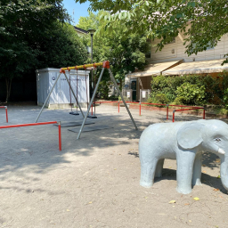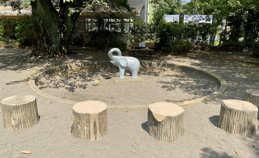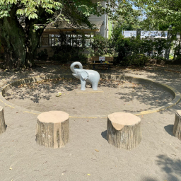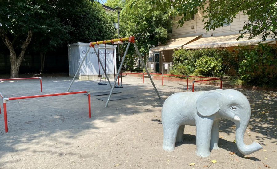 砂場の真ん中にはゾウさんの置物もあり、背中に乗ったりよじ登ったりしながら自由に遊べるのが魅力。ゾウさんと一緒に砂遊びを楽しめます♡使われていないときでも清潔に保たれているので安心です。ブランコや鉄棒など定番の遊具も揃っていて、体を思いきり動かしたい時にもぴったりですよ♪