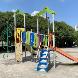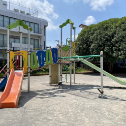 大きめの複合遊具はカラフルで、階段やすべり台を組み合わせた構造になっているので、年齢に合わせた遊び方ができます。3歳くらいまでの小さな子も、無理なく挑戦できる遊具が多いのがうれしいポイントです。