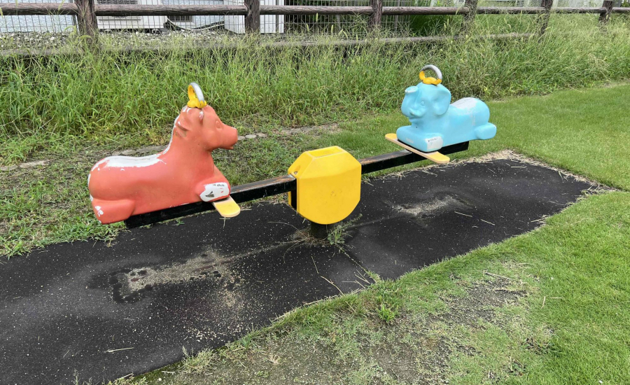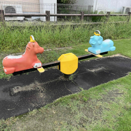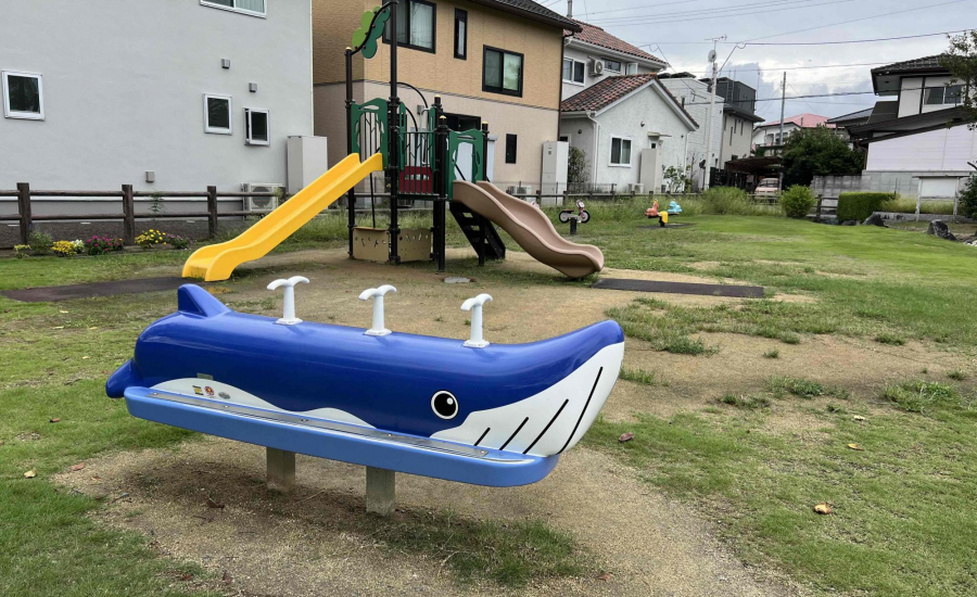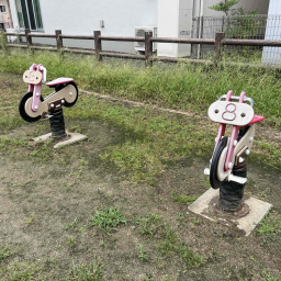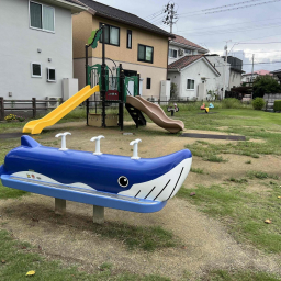 ちびっこ広場には複合遊具があり、2種類のすべり台を楽しむことができます。他にも可愛い動物モチーフのスイング遊具やシーソーがあります。芝生広場は広々しており、走り回ったり、シャボン玉をしたり、シートを敷いてピクニックにもおすすめ♪公園の北側にある多目的広場にはバックネットもあり、安心してボール遊びをすることも◎