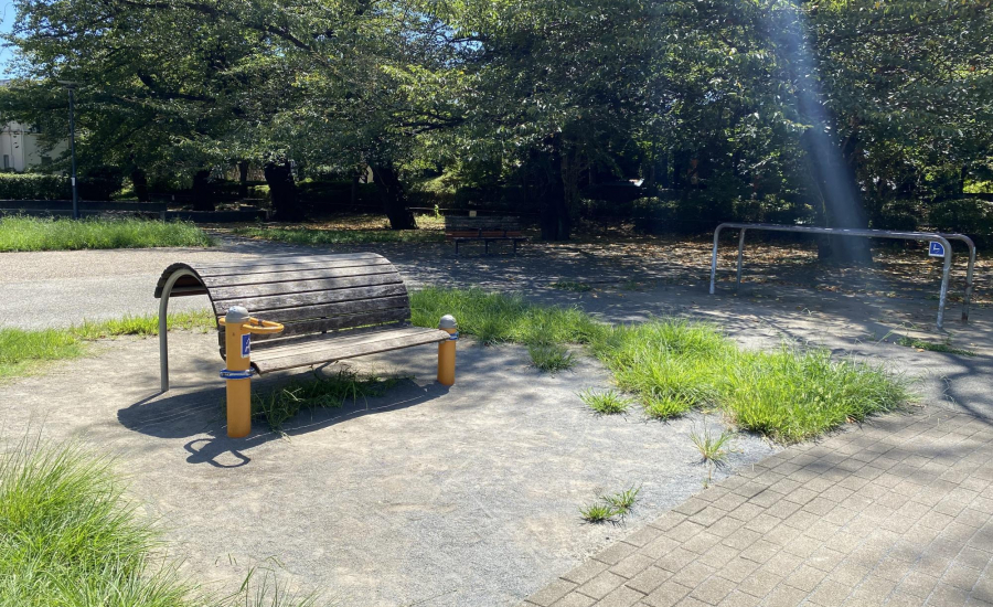 また、公園内には健康遊具も設置されています。ママパパがストレッチをしたり、子どもと一緒に動かして遊んだりと、親子で体を動かせるのが魅力です。