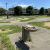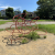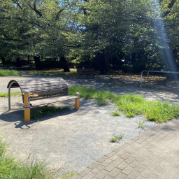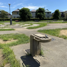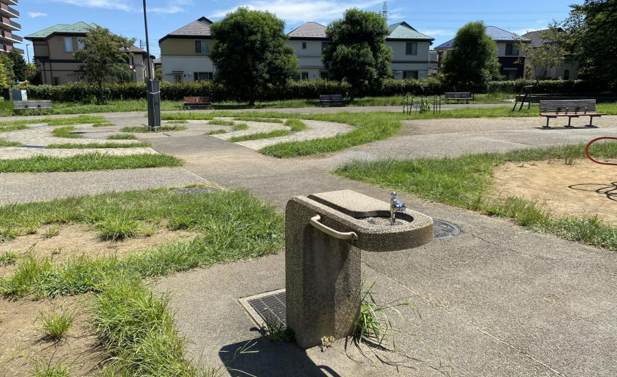 公園全体はコンクリートの地面をベースにしつつ、ところどころに芝生も植えられています。コンクリートの上では三輪車やキックバイクの練習がしやすく、芝生の部分では転んでも安心です。