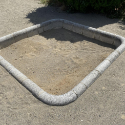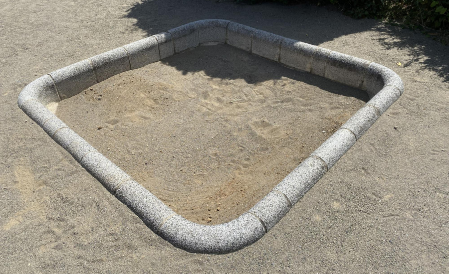砂場は広場の一角にあり、道具を持参すればいろいろな遊び方ができます。山を作ったり穴を掘ったり、型抜きで形をつくったりと、創造力をたっぷり発揮できるのが、砂場あそびの魅力です。特に3歳くらいまでの小さな子には手先を動かす良い練習になり、夢中になって遊べます。