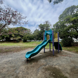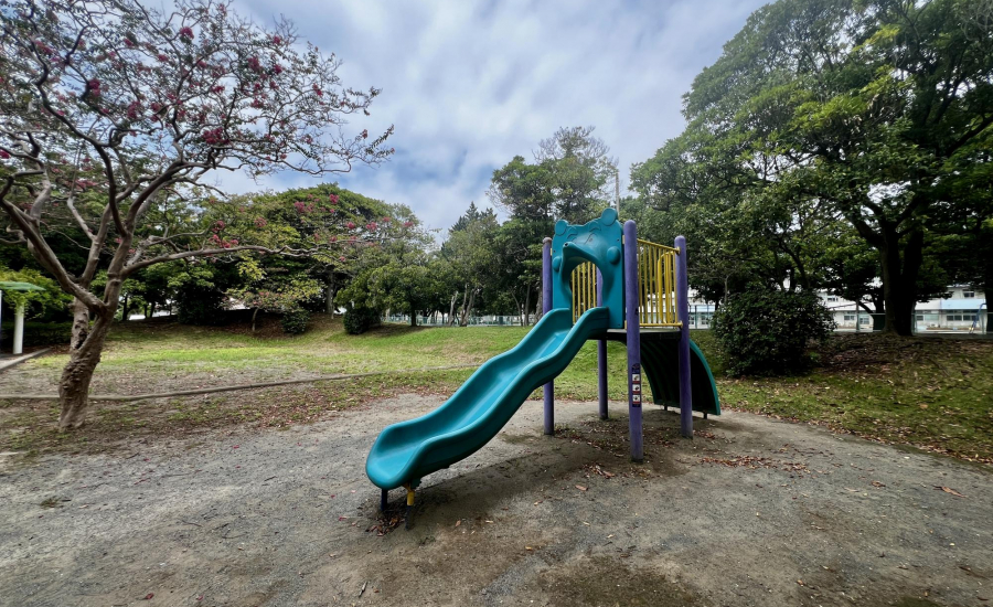 すべり台は大きすぎず、小さなお子さんでも安心して挑戦できるちょうどいいサイズ感。ママやパパが座って見守れるベンチも近くにあり、何度も滑りたがるお子さんを穏やかに見守れます。